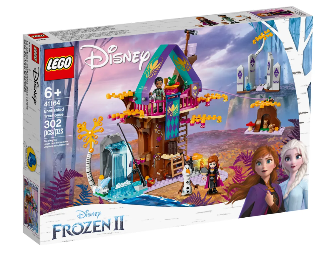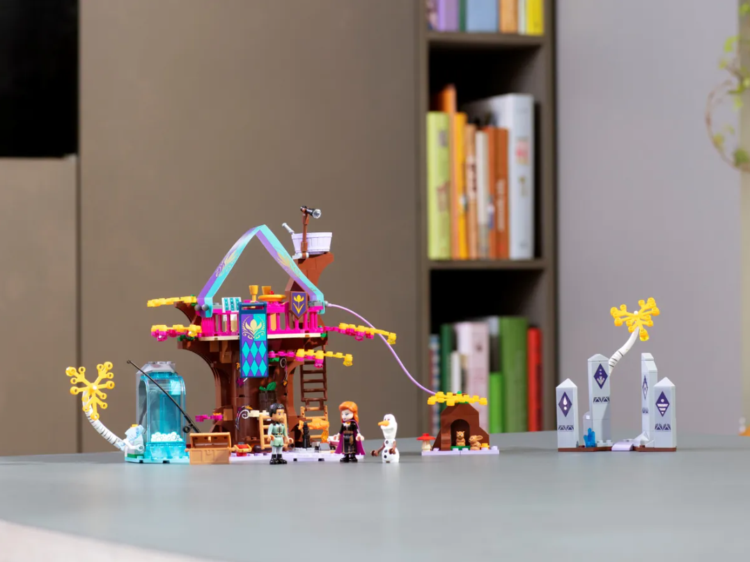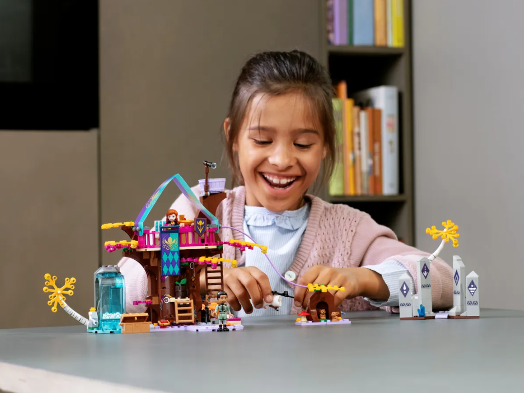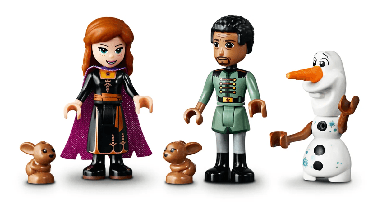 La mágica casa del árbol para construir de este set cuenta con un dormitorio en la base del árbol y un comedor en la planta superior. También hay una escalera que sube al mirador y una alucinante tirolina para descender a toda velocidad hacia el suelo del bosque encantado: ahí tienen su casita 2 conejitos que a tu peque le encantará cuidar. La zona de acampada y la zona de pesca con función de pez volador son perfectas para crear divertidas aventuras con Anna, Olaf y Mattias, los personajes de Frozen II.