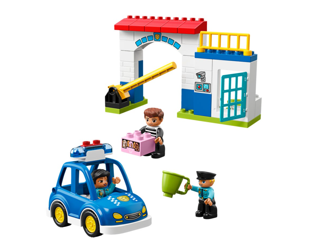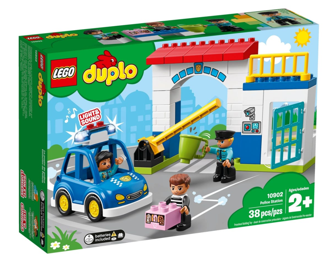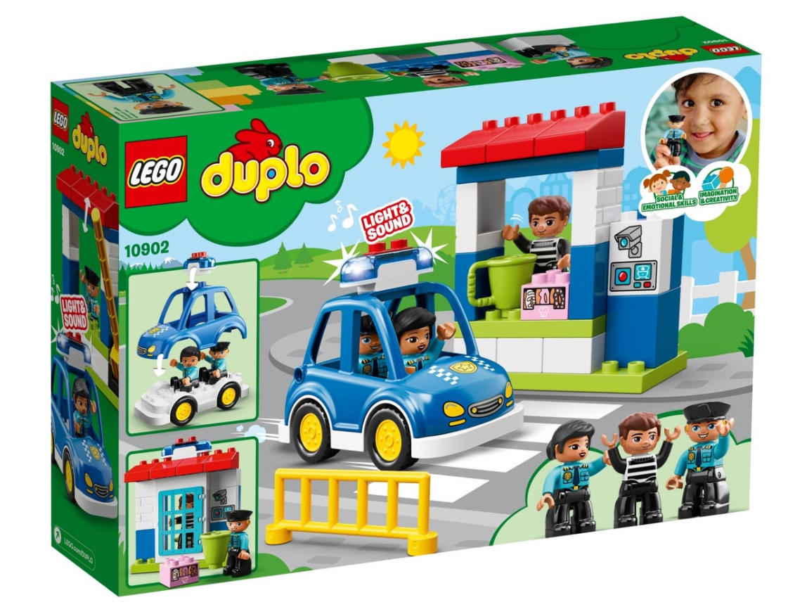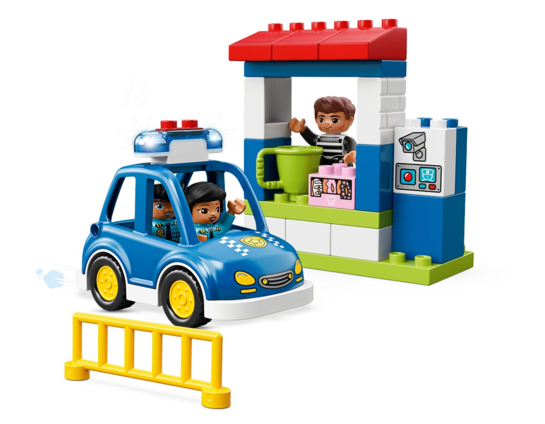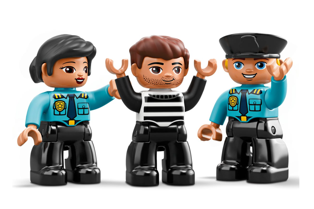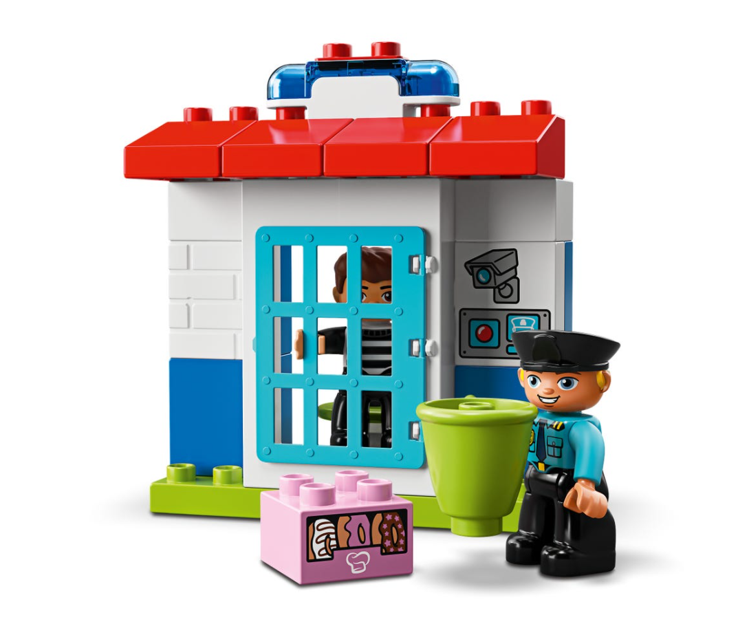 Juega en escenarios de la vida real con Mi Ciudad LEGO® DUPLO®: un mundo fácilmente reconocible habitado por modernas figuras DUPLO. ¡Los niños en edad preescolar se lo pasarán en grande inventando historias e interpretando el papel de los personajes de esta Comisaría de Policía (10902) de fácil construcción! Ayuda a los agentes de policía a salir a toda velocidad en el coche de policía, equipado con luces que parpadean y sonido de sirena, para atrapar al ladrón antes de que huya con los dónuts. Llévalo después de regreso a la Comisaría de Policía de juguete y enciérralo en la prisión. Incluye 3 figuras DUPLO.