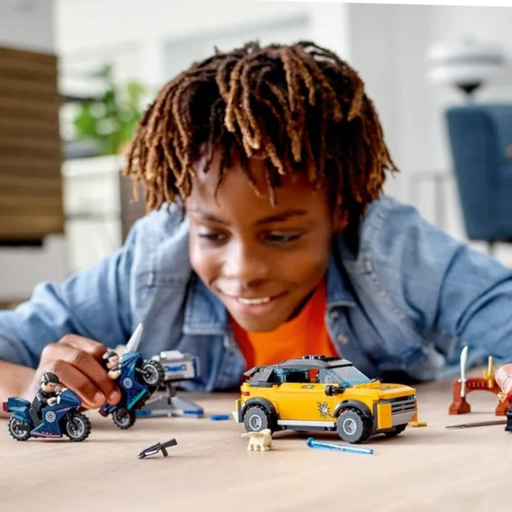 Los niños se unirán a algunos de los personajes más geniales del momento cuando interpreten imaginativas aventuras con Shang-Chi, Katy y Morris, protagonistas del éxito cinematográfico de Marvel Studios Shang-Chi y la Leyenda de los Diez Anillos. Podrán representar persecuciones en coche y en moto, y batallas con un arsenal de armas. Se enfrentarán a Wenwu, líder de los Diez Anillos, y a su esbirro Razor Fist, que combate con un lanzador de discos y un cañón automático 1x4 que dispara “flechas” a quien se cruce en su camino. Los juguetes de construcción LEGO son una manera fantástica de recrear las aventuras del universo Marvel, ¡y este set pone toda la acción en las manos de los peques!